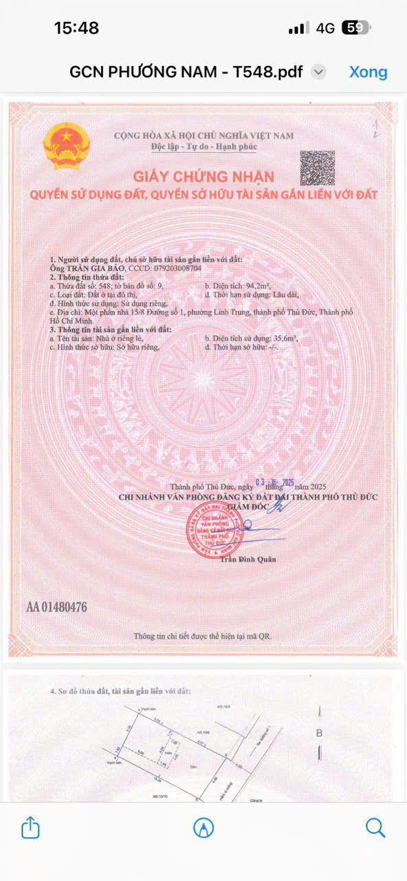 Giá bán: 4 tỷ xxx (nhỏ xíu )